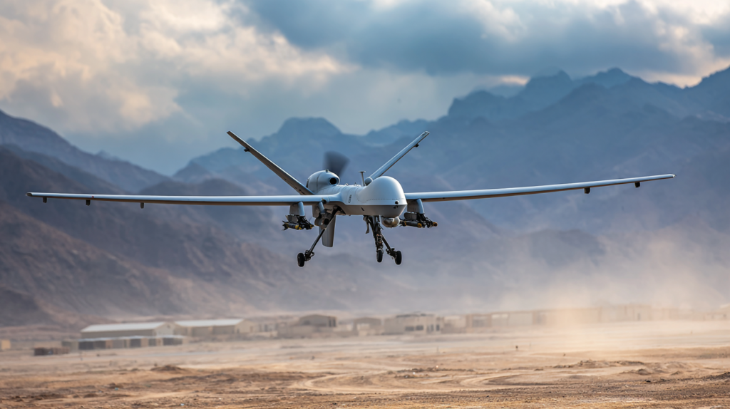 - Long Range and High Payload: This drone can fly for up to 27 hours, covering over 1,000 nautical miles. It can haul up to 1,700 kg of weapons, like Hellfire missiles and JDAMs.